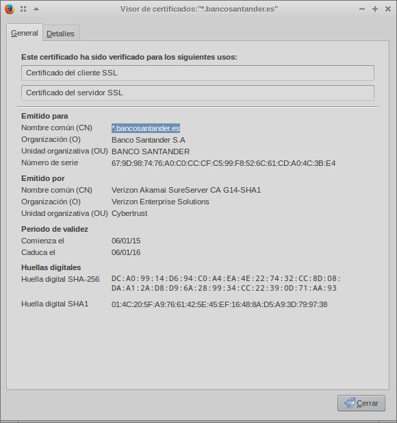Si hacemos clic en elcandado, veremos cómo nos aparece una ficha “conexión” en la que podemos ver lascaracterísticas del certificado.