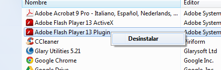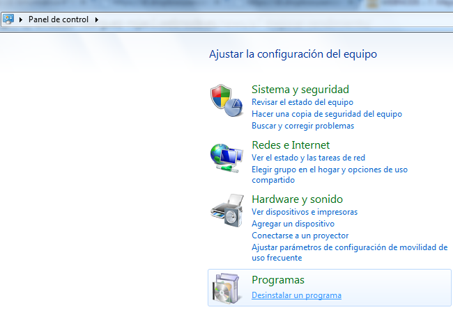 Panel de contro>Desinstalar un programa>Botón derecho en el programa y desinstalar